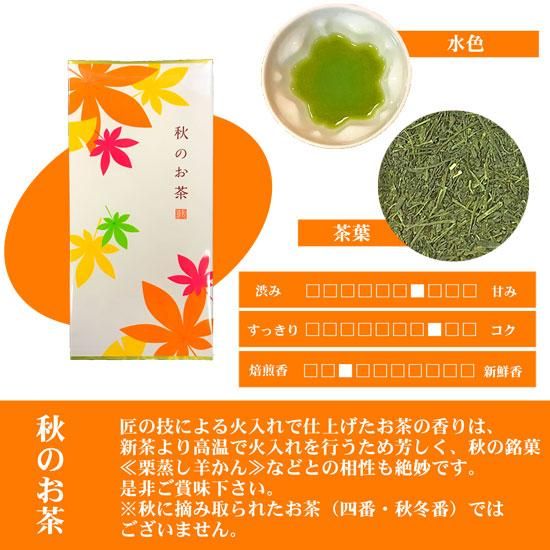 秋の味覚に合うように、味わい深く、角のとれたまるいお茶に仕上げました。